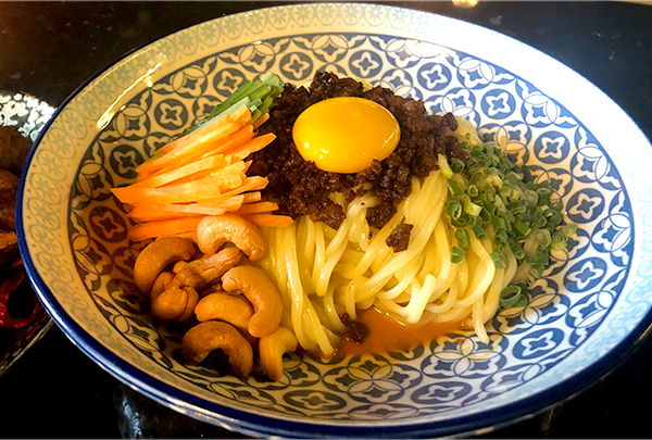 이는 우리가 흔히 접하는 매콤한 국물이 베이스가 되는 일식 `탄탄면’과는 전혀 다른 음식이다. 각종 향신료를 이용하여 만든 소스가 자작하게 깔리며 면과 함께 잘게 다진 돼지고기, 견과류와 땅콩소스, 오이와 채소가 정갈하게 올려지고 계란 노른자가 화룡점정을 찍는다.