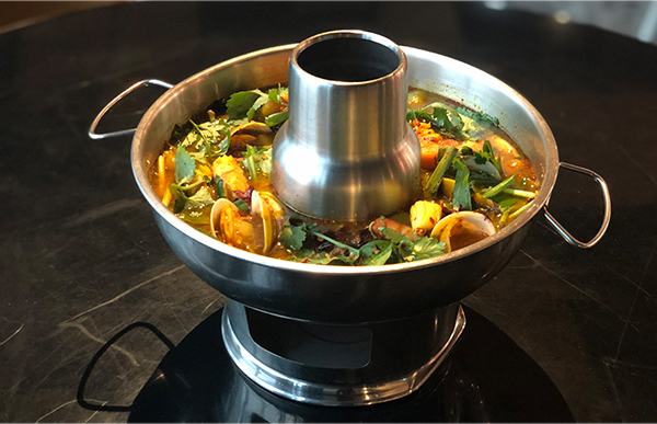마치 한국의 신선로를 연상시키는 팟(Pot)에 닭 육수, 방울토마토, 샬롯, 튀긴 마늘, 테메릭 파우더 (Tumeric powder) 등을 주요 베이스로 하여 국물 맛을 냈으며 태국 현지로부터 공수한 각종 허브와 새우, 조개, 오징어 등 다양한 해산물을 듬뿍 넣어 익혀낸다.