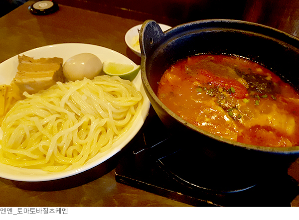 토마토의 이색적인 맛을 느낄 수 있는 맛집을 몇 곳 소개해본다. ‘멘멘’은 삶은 면을 진한 육수에 찍어 먹는 쓰케면 전문점이다.