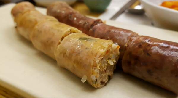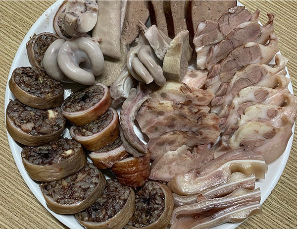 모든 귀한 재료들을 한데 모아 깨끗하게 손질한 돼지의 소창에 채워 쪄내면 깊은 맛과 씹는 즐거움이 더해진 씨락 순대가 완성된다.