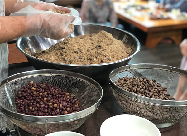 장소관계상 저녁 식사를 진행할 농가 맛집 도랑골 손맛에서 도토리 떡 빚기 시연이 진행되었는데요, 물을 일체 사용하지 않고 도토리 원물과 콩만을 활용하여 빚어내는 방식에 한식 교강사 교육생 분들도 모두 놀라는 눈치였습니다.
