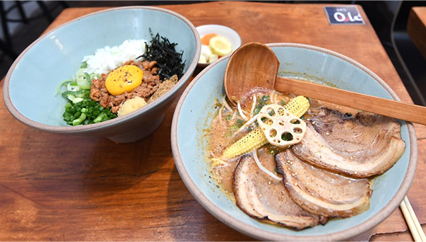 특히 300그릇 한정 판매하는 `도니꾸 나고야 마제 소바’는 직화한 통돼지 고기와 다진 소고기, 김, 파, 반숙 달걀 그리고 달걀노른자에 다진 마늘과 다시마 식초를 첨가해 비벼 먹는 메뉴다.