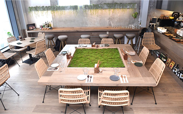 원목, 라탄, 매장 중앙 테이블의 이끼와 같은 자연친화적 인테리어 요소, 태국으로부터 공수한 소품들을 배치하여 공간 자체가 주는 편안함과 테라피의 기능을 하는 향으로부터의 휴식까지 배려한 공간 자체도 음식 못지않은 화젯거리다.