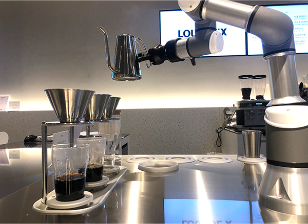 레귤러 식스 내 유일한 카페 공간인 라운지 엑스는 인간과 협동 로봇이 함께 서비스를 하는 가장 직관적 형태의 푸드테크 공간이다.