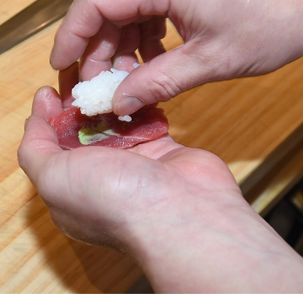 매일 늦은 시간 영업이 끝나고 새벽 시장을 찾는 일을 지속하는 일이 고되면서도 같은 계절 생선이라도 식재료의 품질은 매일 다르기 때문에 눈으로 직접 확인하는 것 밖에는 답이 없다고 당연한 듯 말하는 셰프의 스시에는 `성실함의 위대함’이 담겼다.