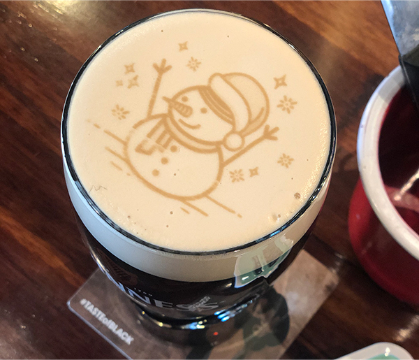 또한 기네스 맥주를 주문하면 거품 위에 몰트로 된 액상 카트리지로 원하는 그림을 프린팅 해주는 특별한 서비스도 제공하고 있는데 기계 자체가 워낙 고가라 전 세계적으로도 일반 펍에서는 거의 경험하기가 어렵다고.