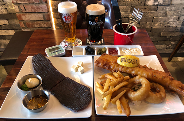 이곳의 대표 요리는 누가 뭐래도 ‘피시 앤 칩스’다. 아일랜드 정통 방식을 그대로 고수하여 만들어낸 메뉴로 생선 튀김의 반죽에 특이하게 그냥 마시기도 아까운 기네스가 들어가 바삭함과 풍미를 더한다. 어니언링, 웨지감자가 사이드로 제공되며 맥아를 원료로 한 발효 식초인 몰트 비네거 소스를 더했다. 그야말로 기승전’맥’이다.