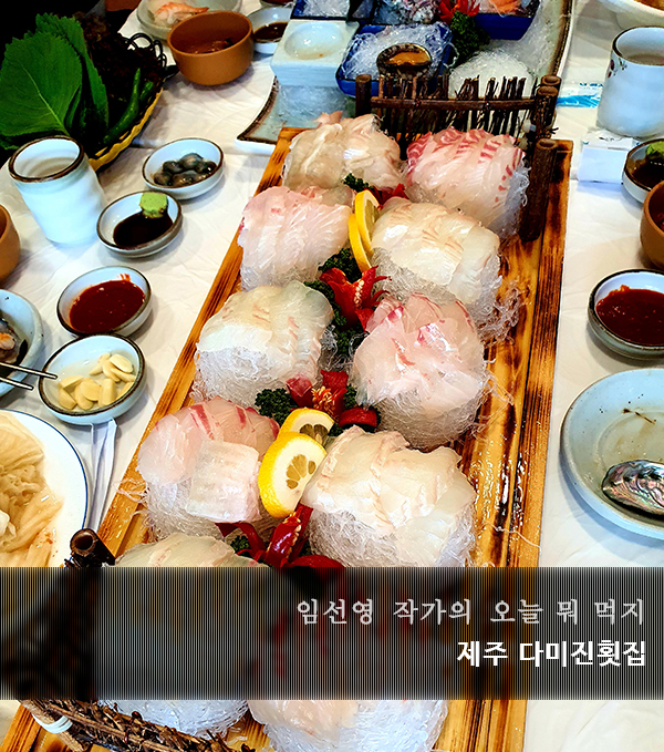 차는 해안선을 미끄러지며 표선항에 도착했다. 2002년부터 조용히 한자리를 지켜온 다미진횟집. COVID 19여파로 다른 곳들은 문을 닫는 지경에 이르렀지만 이 집만은 손님의 온기로 활기를 띄고 있었다.