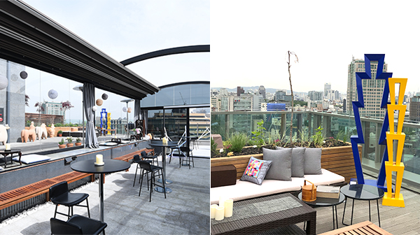 또한 호텔의 최상층에 자리하고 있는 만큼 탁 트인 루프탑에서의 낭만을 만끽할 수 있는데 도심의 스카이라인이 펼쳐진 야외 테라스 공간과 조계사의 알록달록한 연등과 아름다운 곡선의 기와지붕을 내려다볼 수 있는 좌석이 특히 인기다.
