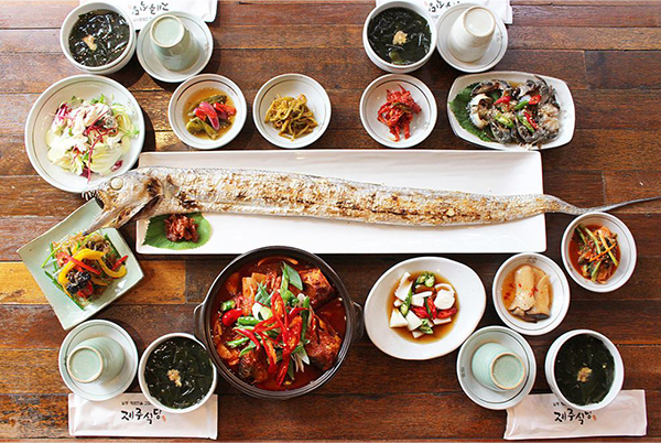 ‘제주 한정식 코스 메뉴’로 다양한 음식을 맛봐도 좋고 생갈치 한 마리를 통으로 구워내는 ‘은갈치 정식’도 인기로 돔베 고기, 성게미역국 등 다채로운 제주의 맛을 경험할 수 있다.