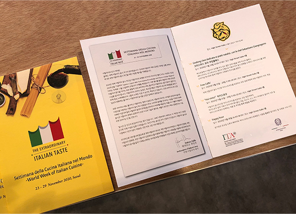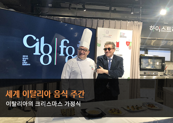 2020년 세계 이탈리아 음식주간을 기념하며 올해도 국내에서 다양한 이벤트가 진행되었는데 그시작을 알리는 한국의 첫 번째 행사로는 현재 국내 레스토랑에서 이탈리아 요리를 하고 있는 젊은 요리사들을 초청하여 이탈리아의 음식문화를 소개하고 크리스마스를 위한 오리지널 레시피와 함께 이탈리아 식재료의 우수성을 알리는 <이탈리아 크리스마스 가정식 마스터 클래스>가 진행되었다.