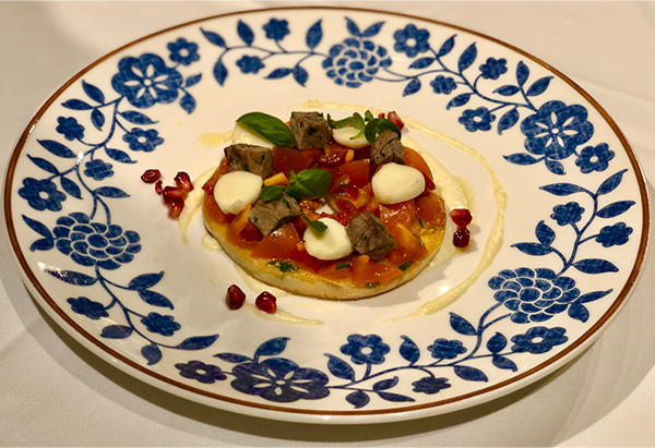 전채요리에 해당하는 안티파스토(Antipasto) 코스에서는 소고기, 석류, 파르미지아노 크림과 파슬리 소스로 만든 샐러드와 바삭한 카프레제 프리셀라의 조리 시연이 있었다.