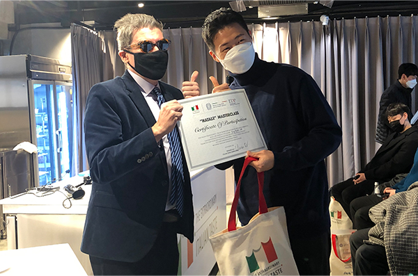 이렇게 시연은 마무리 되었으며 질의응답 시간과 이날 참가한 젊은 셰프들에게 수료증을 수여하고 이탈리아 무역공사에서 준비한 특별한 이탈리아 식재료 선물을 증정하는 시간이 이어졌다.