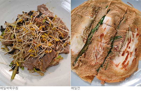 봉평에 ‘미가연’이라는 식당을 차리고 메밀을 이런저런 각도에서 분석하였다. 메밀의 품종별 차이점이나 메밀싹도 그녀에게는 그냥 지나칠 수 없는 거리였다. 막국수집에서 흔히 사용하는 단 메밀에 씨앗같이 작은 크기의 쓴 메밀의 적합한 혼합 비율을 찾아냈고 그것을 얼음 물로 반죽하여 자가제면을 하였다. 수입산 대비 훨씬 비싼 국산 메밀을 100% 사용하는 것만으로도 큰 결단인데, 거기에 단 메밀 가격의 두 배인 쓴 메밀을 절반이나 섞어 만드는 막국수에 대한 애정은 남다를 수밖에 없었다. 그리고 그녀의 관심은 메밀싹에도 쏟아졌다. 날씬한 콩나물처럼 생긴 메밀싹 고명을 국수나 비빔밥 어디에든 풍성히 올려준다. 쓴 메밀과 메밀싹에는 메밀의 항산화성분인 루틴이 일반 메밀보다 월등히 높기에 고명의 효과뿐만 아니라 진정한 건강식을 구현하고 있는 셈.