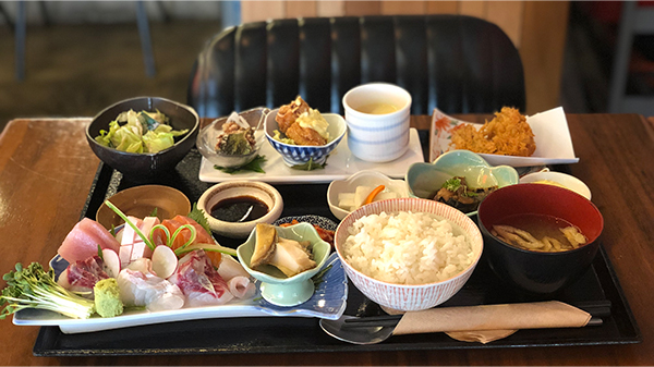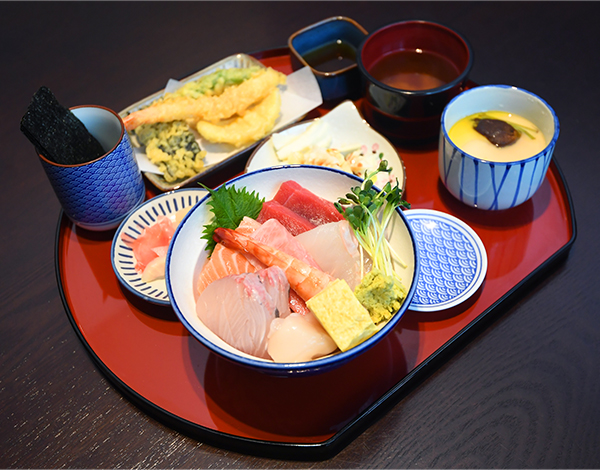 다양한 일식 덮밥류가 많지만 그중 회와 튀김, 조림 등 여러 요리를 개인 반상에 즐길 수 있는 ‘사시미 정식’이 유명하다.