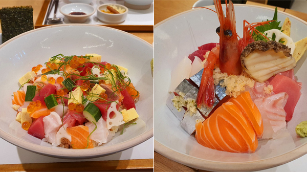 대표 메뉴인 카이센동을 비롯한 모든 덮밥 메뉴는 단품이 아닌 1인 반상 형태로 제공되는데 메인 메뉴를 포함하여 차완무시, 모둠튀김, 샐러드, 된장국, 절임류까지 호화로운 일식 코스 메뉴를 한상에 즐기는 셈.