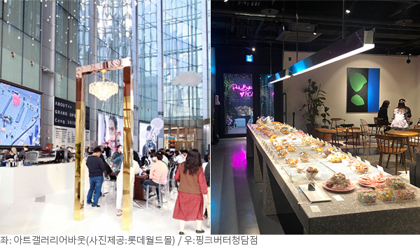 특히 최근 소비 활동을 통해 문화적 만족감을 충족시키려고 하는 성향을 가진 소비층인 ‘아트슈머(Artsumer)’가 밀레니얼 세대를 중심으로 확산되면서 유통 및 서비스 업계에서도 이들을 겨냥한 공간들을 적극적으로 선보이고 있다.