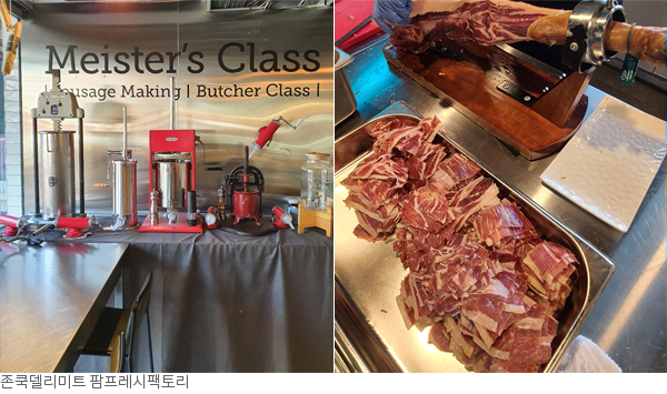 간편하게 존쿡 델리미트의 가공육 제품이 사용된 델리 메뉴를 즐길 수 있는 외식 공간과 고객들이 육가공품의 모든 제조 과정을 보고, 만지고, 향을 맡아볼 수 있는 관람 공간, 그리고 직접 고객들이 원하는 재료를 골라 프레시 소시지를 만들 수 있는 체험 공간이 모두 유기적으로 결합되어 오감을 만족시키는 경험을 제공한다. 물론 체험의 끝에는 즐거운 미식의 경험으로 마무리된다.