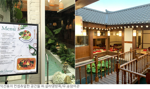 다양한 ‘콘셉트’ 레스토랑, 카페가 집약되어 있는 익선동은 서울의 마지막 한옥 마을로 지정되면서 기존의 한옥을 개조한 공간에 현대적인 카페와 음식점들이 한정된 공간에 빼곡히 모여 있어
