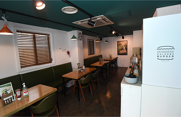 상수동 ‘뎅댕 깔조네버거’가 유독 단골 고객이 많은 이유도 이러한 이유 덕분이다. 수제버거에 이탈리아 피자의 한 종류인 깔조네를 접목시킨 ‘깔조네 버거’를 주력으로 선보이고 있는 이 곳은 음식 맛을 보는 순간 메뉴에 대한 호기심이 즐거운 발견이자 확신으로 이어지는 곳이기도 하다.