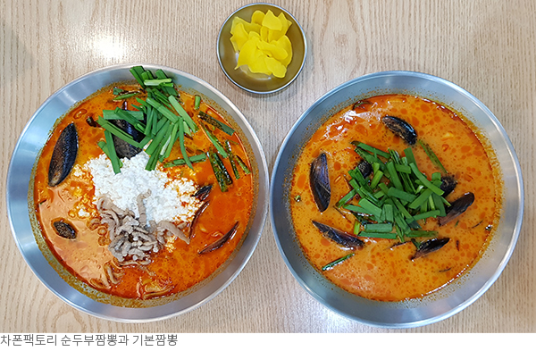 수원 광교지구에 독특한 짬뽕집이 있습니다. 상호도 음식의 탄생 스토리를 다 알고 있다는 듯한 ‘차폰팩토리’입니다. 맛도 한중일 짬뽕의 특성을 고루 반영을 했습니다. 사골을 우려낸 육수에 신선한 야채와 돼지고기를 웍으로 볶아 조리해내고, 면도 일본처럼 툭툭 끊어지는 독특한 식감입니다. 먹기도 전에 벌써 이마엔 땀이 송골송골 맺히네요.