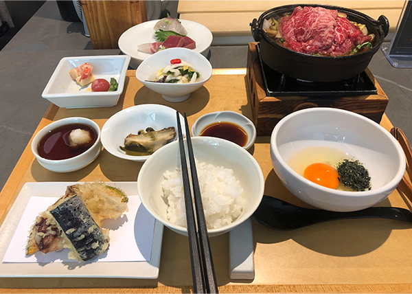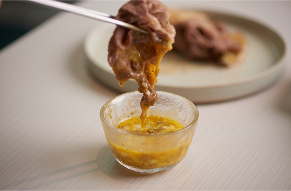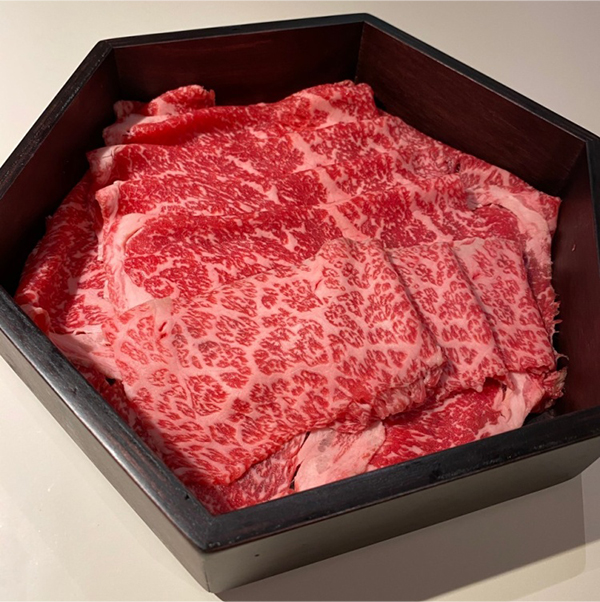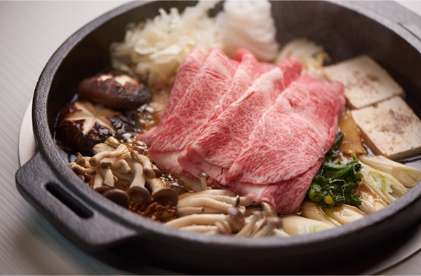 또한 과도한 지방의 마블링 고기보다는 1등급 투플러스 한우 채끝 부위를 엄선하여 적절한 지방감과 부드러운 식감, 단백질의 풍미가 어우러진 밸런스를 강조한다. 고객이 직접 익혀 먹는 음식인 만큼 ‘누가 어떻게 조리하더라도 맛있을 것’, 이 어려운 걸 해내는 충분히 숙성된 최상급 소고기는 그 위엄을 증명하듯 스키야키 냄비에서 오래 익히더라도 부드러운 식감을 충분히 유지한다.