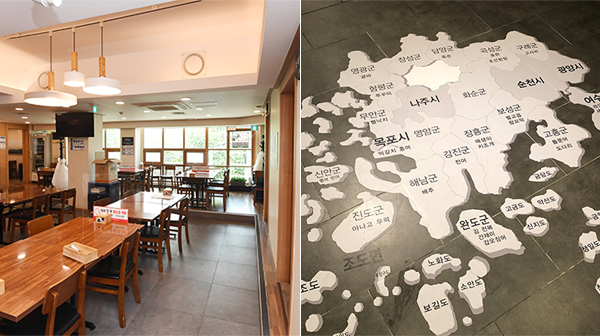 매장에 발을 들여놓는 순간 서울 한복판에서 순식간에 남도로 여행을 떠나게 된다. 입구 바닥에는 각 지역명과 특산물이 표기된 남도의 지도가 펼쳐져 있으며 벽면 한쪽으로 나란히 자리한 개별실에는 각각 남도 바다의 보석 같은 섬들의 이름이 새겨져 있으니 말이다.