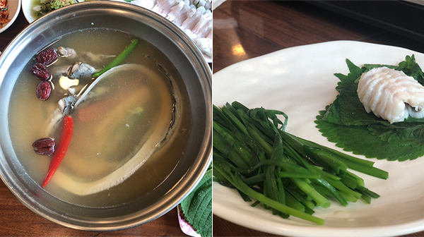 살코기를 즐기고 나면 각 재료의 맛이 푹 우러난 육수 한 그릇을 먹기 좋게 간을 해서 내어준다. 국물 자체가 사실상 갯장어의 엑기스라고 봐도 과언이 아니다.