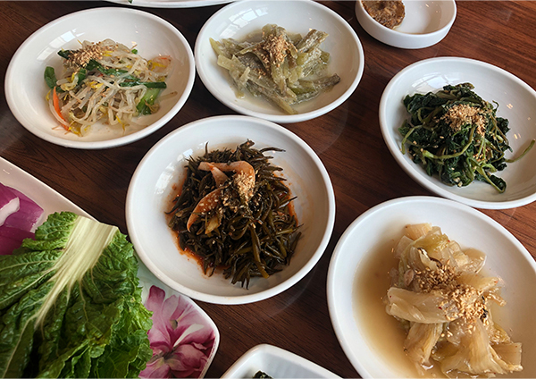 남도 밥상의 진수는 함께 차려내는 갖가지 맛깔나는 반찬에서 확인할 수 있다. 남도에서 나고 자란 정대표가 눈으로 직접 보고 먹어온 어머니의 맛을 모티브로 한 최소 12첩의 푸짐한 찬들도 하나하나 각자의 이야기를 갖고 있다. 부드럽고 파삭한 완도의 파래김, 직접 농사짓는 배추김치와 바지락살과 함께 버무린 머위나물, 그리고 청양초를 갈아 넣어 알싸한 맛이 일품인 열무물김치 등 이 모든 찬들 역시 식탁에 계절의 미학을 알려준다.
