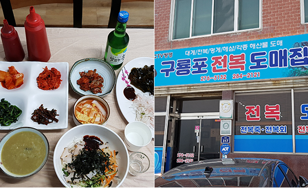 하지만 전복도 그에 못지않게 유명한 데, 제주에 이어 경북이 해녀 수가 두 번째이고 그중 포항 해녀가 경북에서 제일 많다는 사실에서 일면 수긍이 갑니다. 학창시절 수학여행 때 맛본 ‘전복도강죽’과는 아예 차원이 다른 전복죽을 내는 식당이 구룡포에 있습니다.