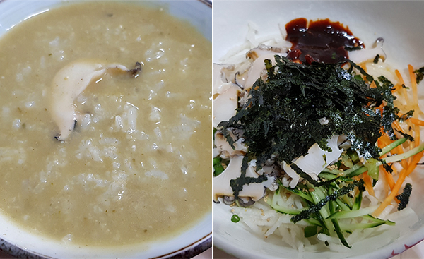 일반적인 물회의 개념을 뒤집는 전복물회를 주문하면, 전복죽은 물론이고 회무침과 각종 반찬들이 식탁을 가득 채웁니다. 비록 혼자지만 지역 소주 반병 정도의 반주는 전복에 대한 최소한의 예의라고 봐야지요.
