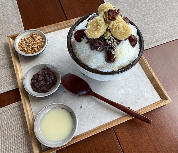 차가운 빙수를 먼저 먹게 되면 혀 위의 미각세포들이 긴장을 해서 다른 맛을 느끼기 힘들게 됩니다. 빙수는 꼭 마지막에 따로 가져다 달라고 부탁하시는 것이 좋습니다. 차, 스파클링 와인, 빙수, 이런 순서로요.