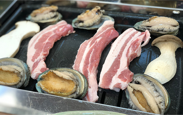 전남 목포시 평화광장 인근에 자리한 곳. 튼실한 생전복과 삼겹살을 함께 조합하여 즐길 수 있는 ‘전복 삼겹살’을 선보이고 있다.