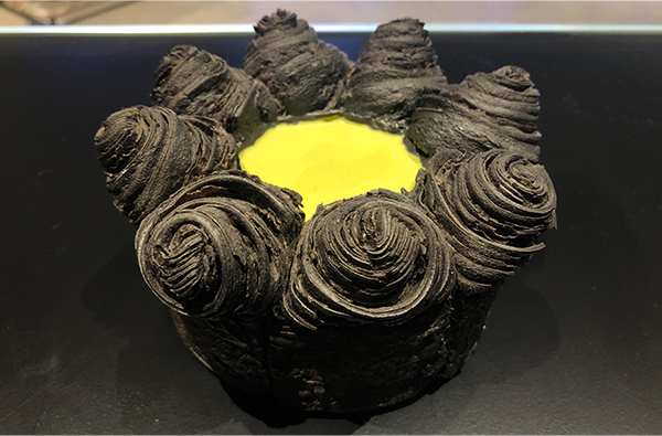 미래형 공간을 통해 향후 유통의 방향성을 고민하고 소통하며 다양한 콘텐츠를 소개하기 위한 의미를 담은 만큼 패션과 아트를 접목한 기발한 디저트를 선보인다. 새카만 페이스트리 가운데 녹색의 말차 크림을 가득 품어 호수를 품은 산봉우리를 형상화한 ‘피크 케이크(Peak cake)’가 시그니처.