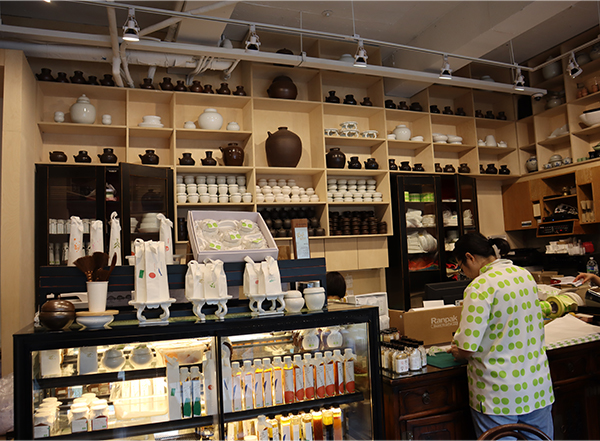 또한 우수한 품질과 품격을 갖춘 곳간의 식료품들과 찬장의 그릇 제품들은 콩두점점만의 강점인 전통의 미를 현대적으로 풀어낸 감각적인 패키지 디자인을 통해 코로나 시국 식사 대접이 어려운 결혼식이나 각종 행사의 귀한 답례품으로도 벌써 입소문이 났다. 곳간 한켠의 테이스팅 존에서는 판매되는 기름과 식초, 소금 등에 담긴 스토리를 듣고 직접 맛볼 수 있는 체험의 즐거움을 제공한다. 단순히 식료품을 사고파는 목적이 아닌 우리의 식재료와 식문화가 갖고 있는 우수성과 경쟁력에 대한 자긍심을 전파하고자 하는 콩두점점의 방향성을 보여주는 공간인 셈.