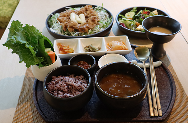그리고 밥 대신 샐러드로 변경할 수 있다는 점도 특색인데 제공되는 샐러드는 곳간에서도 선보이고 있는 들기름으로 드레싱 맛을 냈다. 식사의 여유가 허락된다면 서리태 막걸리를 6년근 홍삼과 블렌딩한 콩두점점만의 구수하고 달보드레한 막걸리 한 잔도 함께 경험해 보길 바란다.