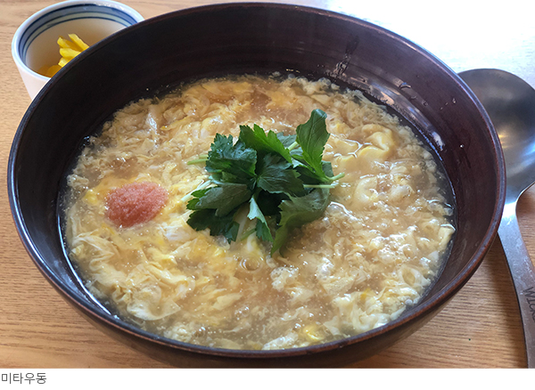 삼전동 골목길에 자리한 작은 우동집 ‘미타우동’은 묵직한 면의 질감을 오롯이 느낄 수 있도록 제면한 남다른 ‘우동 면발’을 맛볼 수 있는 곳. 밀가루와 물, 소금을 기본으로 하여 치대고 밟고 숙성하여 제면을 마친 우동 면의 ‘코시(こし)’는 탄탄하고 꽉 찬 밀도를 자랑한다. `명란 앙카케 우동’은 전분을 머금어 살짝 걸쭉한 국물과 부드럽게 풀어진 달걀, 그리고 명란이 부드럽게 면을 코팅하여 감싸고 있어 겨울과 어울리는 메뉴.