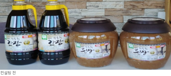 정승환 명인(67호, 지정품목_죽염홍된장)의 농업회사법인명인정승환㈜는 준비중인 된장 테마파크에 어울리는 상품용기 및 라벨 개선, 상품 네이밍, 포장디자인 등을 전반적으로 진단하고 개선했다. 특히 대표상품인 씨간장의 상품명을 홍간장으로 변경하고 패키지를 고급화하는 등 명인제품으로서 프리미엄 이미지를 담아내기 위해 노력했다.