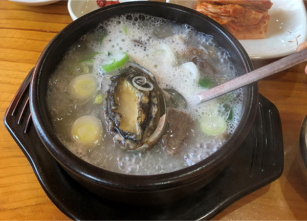 전북 무주군에 위치한 곰탕 전문점. 가마솥에 사골 잡뼈 등 각종 약재를 넣고 30시간 이상 끓여낸 맑고 고소한 국물에 넉넉한 고기와 함께 실한 전복도 보너스로 들어가 있어 든든한 한 끼 보양이 가능한 전복 곰탕을 선보인다.
