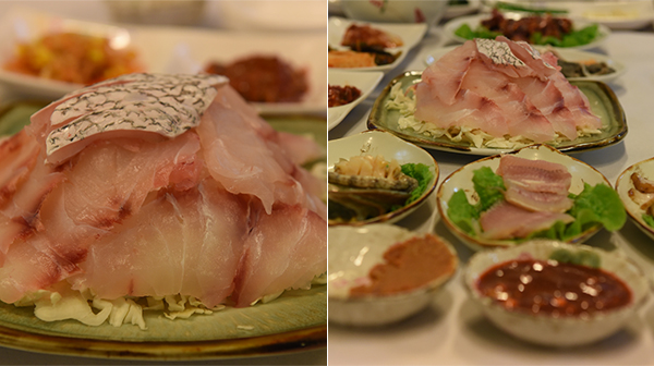 전남 목포역 인근, 민어의 거리에 자리한 49년 전통의 민어회 전문점.