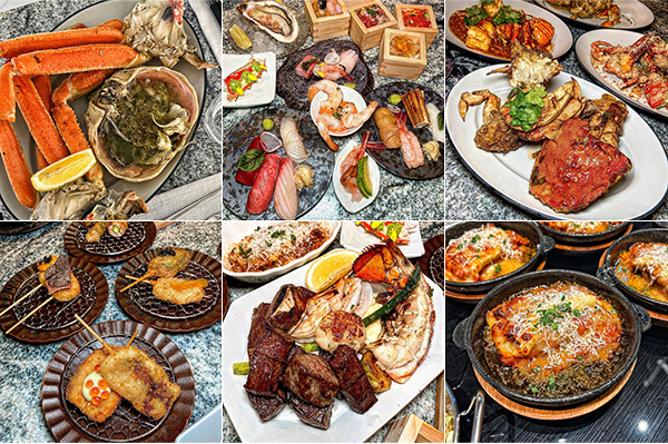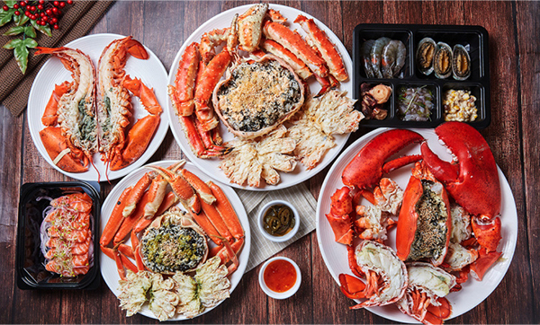 기본적으로 방문객들에게 스팀 요리한 대게와 랍스터가 테이블로 서비스되며 추가 주문은 무제한. 인기 섹션인 중식 코너에서는 갈릭과 칠리 랍스터, 던지니스 크랩은 진저, 버터 각각 2종의 즉석요리로 주문 가능하며 그릴 섹션에서는 육류와 해산물 등 취향에 맞는 모둠 그릴 플래터를 제공한다.