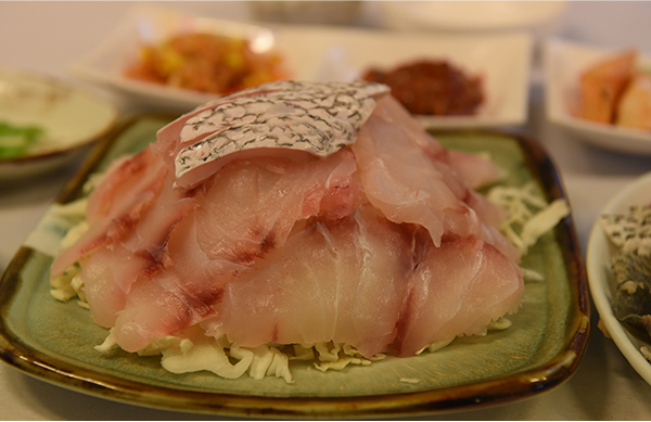 덕분에 이곳의 상차림도 항상 의연하다. 손님들은 대부분 민어 정식 코스나 세트 메뉴를 주문하는데 민어의 고장인 목포를 방문한 만큼 다양한 민어의 맛을 한 번에 경험하고 싶어 하기 때문. 민어회 코스요리는 기본 반찬과 더불어 메인 메뉴로는 민어회, 민어 전, 민어 찜, 민어 초무침, 특수부위 부산물, 마지막으로 민어탕이 제공된다. 또한 목포의 별미인 홍어 삼합과 해산물도 함께 맛볼 수 있다는 점이 메리트.