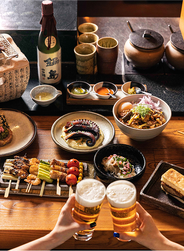 일본식 이자카야를 콘셉트로 하여 참숯 그릴에 구운 일본식 꼬치구이를 비롯해 사시미, 튀김 등 다양한 일본식 안주 요리를 일본 생맥주와 프리미엄 사케와 함께 선보이며 계절에 따라 새로운 식재료를 접목한 신메뉴를 내놓기에 아지트 삼아 자주 방문하기 손색이 없다.