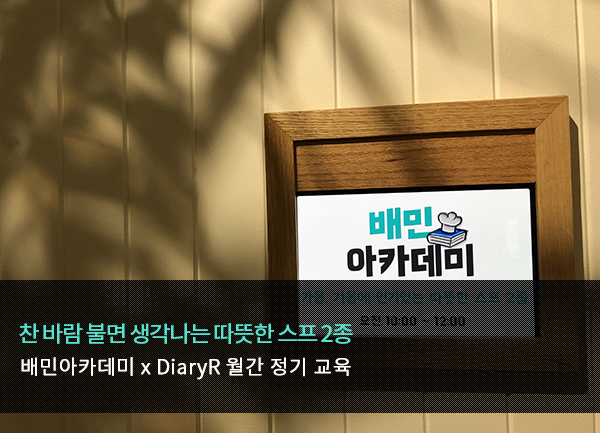 배민아카데미 x DiaryR 월간 정기 교육_찬 바람 불면 생각나는 따뜻한 수프 2종