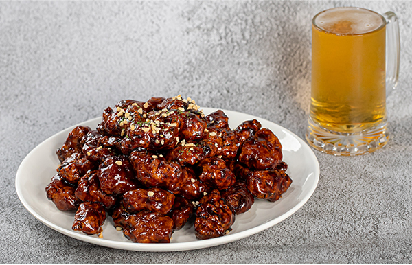 흑마늘 진액이 들어간 만큼 일반 닭강정 양념보다 짙은 빛깔을 띠는 소스가 특색이며 닭강정은 매운맛, 약간 매운맛, 달콤한 맛 세 가지로 한입 크기로 잘라낸 싱싱한 닭 순살을 주문 즉시 튀겨내 양념에 버무려 제공한다.