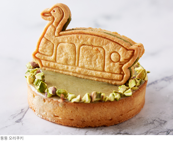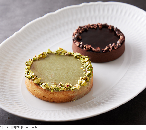 ‘Day 타르트’에는 낮에 반짝이는 의림지의 푸른 물, 호반을 둘러싼 초록을 표현한 피스타치오와 제천 지역의 특산물 복숭아, 사과 등으로 만든 달콤한 잼이 들어가 있습니다.
