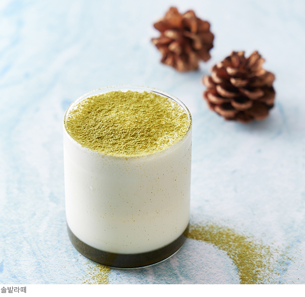 의림지 솔밭공원 소나무의 싱그러움을 담아 푸르른 솔잎 가루가 솔솔 뿌려진 달콤 고소한 라떼.