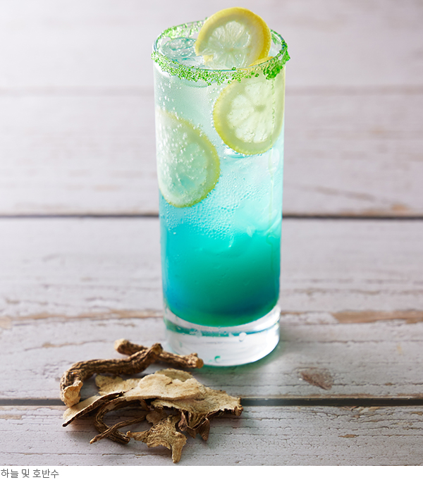 푸르른 의림지 물결과 제천의 청정 자연을 투영한 영롱한 하늘빛 그라데이션의 상큼한 푸른빛 레모네이드.
