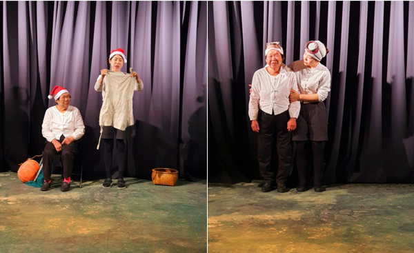 해녀 할머니에게 식사 손님이자 관객이 궁금한 것을 질문하며 소통하는 시간이 시작된다. ‘할머니 오늘도 바다에 들어갔다 오셨어요?’ ‘할머니, 어떤 옷을 입고 물질을 하시나요?’ 해녀란 직업이 생소한 젊은 관객들은 궁금한 게 많다. 할머니는 하얀 소창 같은 옷을 보여준다. 흔히 알고 있는 검정색 고무 잠수복은 할머니의 나이 40대에 접어들어서야 입기 시작했단다. 그 전에는 얇디얇은 하얀 천옷을 입고 물질을 했는데 추운 날 바닷물에 들어갔다오면 불턱에서 1-2시간 몸을 녹여야 다시 물질하러 들어갈 수 있었다는 고단한 옛 이야기가 듣는이들의 가슴을 뭉클하게 만든다.