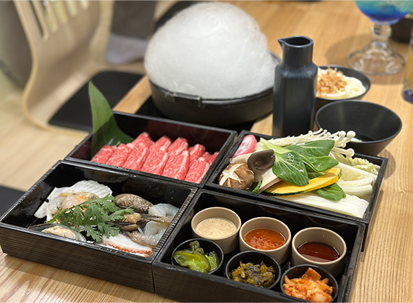 일명 ‘구름 스키야키’로 불리는 관서식 스키야키가 특히 인기로, 스키야키 냄비에 풍성한 솜사탕이 구름처럼 담겨 제공되며 타래 소스를 부으면 열기와 함께 솜사탕이 이내 스르륵 녹아내리는 재미난 퍼포먼스를 선사한다.